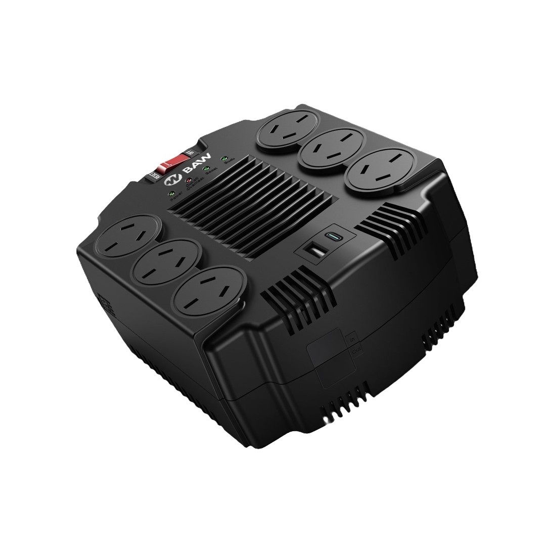 Estabilizador de Tensión Automático 2000VA 1000W con USB BAW ET61000U2Y1 6 Tomas IRAM y AVR